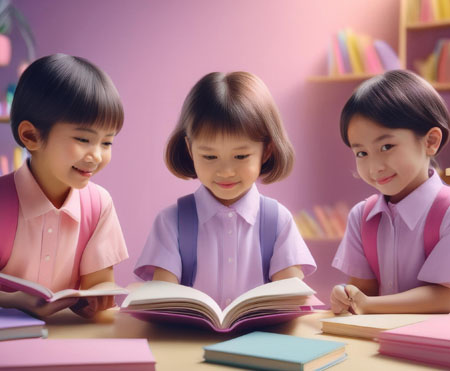 cô Huyền, thầy Sơn 2 bạn BiBi và Susie.