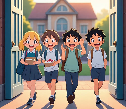 cô Huyền, thầy Sơn 2 bạn BiBi và Susie.