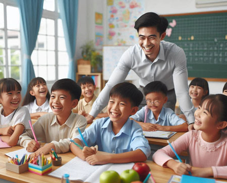 cô Huyền, thầy Sơn 2 bạn BiBi và Susie.